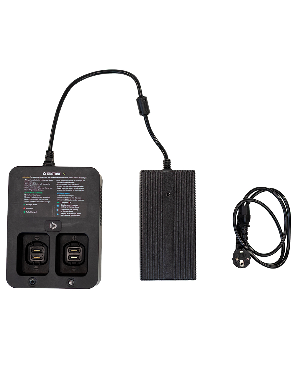 The Duotone Battery Charger Set has everything you need to make sure your foil assist batteries are charged up for your next best session.