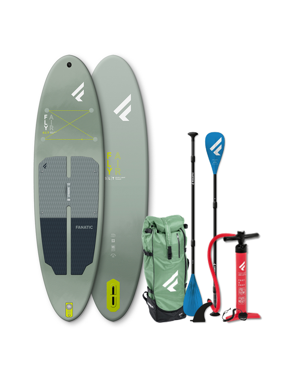 We also sell the Fanatic Fly Air Premium as a package – board, paddle, leash, pump and wheeled backpack – click here for further details