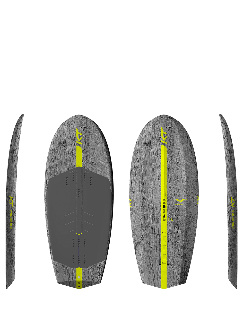 The KT Drifter Spark – the board designed for the first steps into foiling – stable, easy to balance and gives confidence underfoot to allow new or heavier riders to stand comfortably and learn board and wing control.