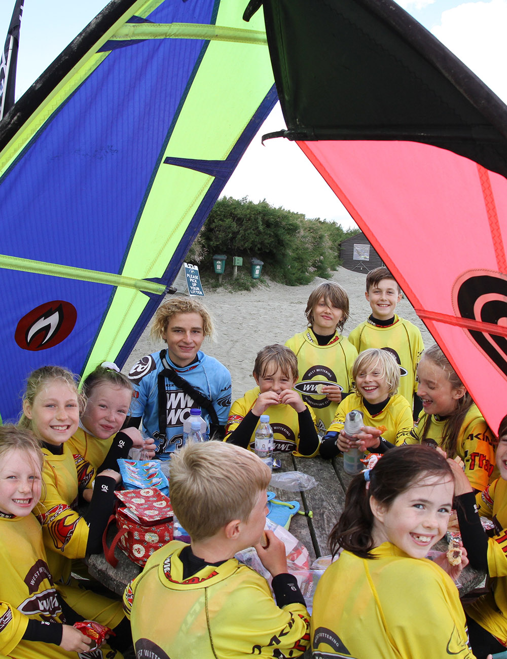 We provide the kids with everything you need to participate, including a high-quality, single lined glued and blind-stitched wetsuit and buoyancy aid. We also have a warm, dry club house with hot showers, changing rooms and as much tea and coffee as you want so you can eat your lunch in comfort. In fact, the only thing you need to bring is swimmers and your towel. We have regular breaks throughout the course to make sure everyone is okay and warm enough. All of our instructors are fully RYA-qualified and are hand-picked to ensure you have the best learning experience – plenty of fun whilst still learning! All instructors carry UHF radios, we have jet-ski rescue and there are life-guards on West Wittering beach in the summer months, ensuring safety is paramount whilst they have fun on the water.