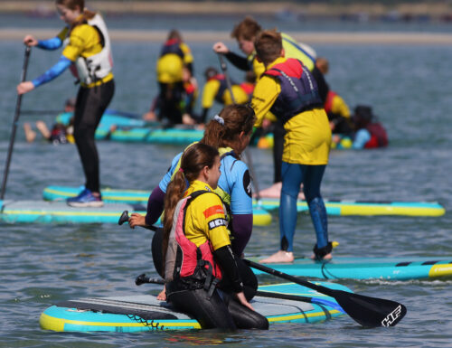 The 3 day course is an intense water experience that includes a taster of other sports like surfing, stand up paddle surfing and power kiting. The sport is decided throughout the day according to the tidal state, water conditions and weather. 2XS use land-based simulation, on-the-water demos to help the kids understand the basics of windsurfing.