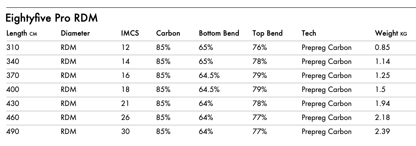 80% Carbon. This is a super light and super quick mast with an incredibly nice feeling. A mere split second softer than our Ninety Pro, and lighter, it is bound to be an instant best seller, worldwide.