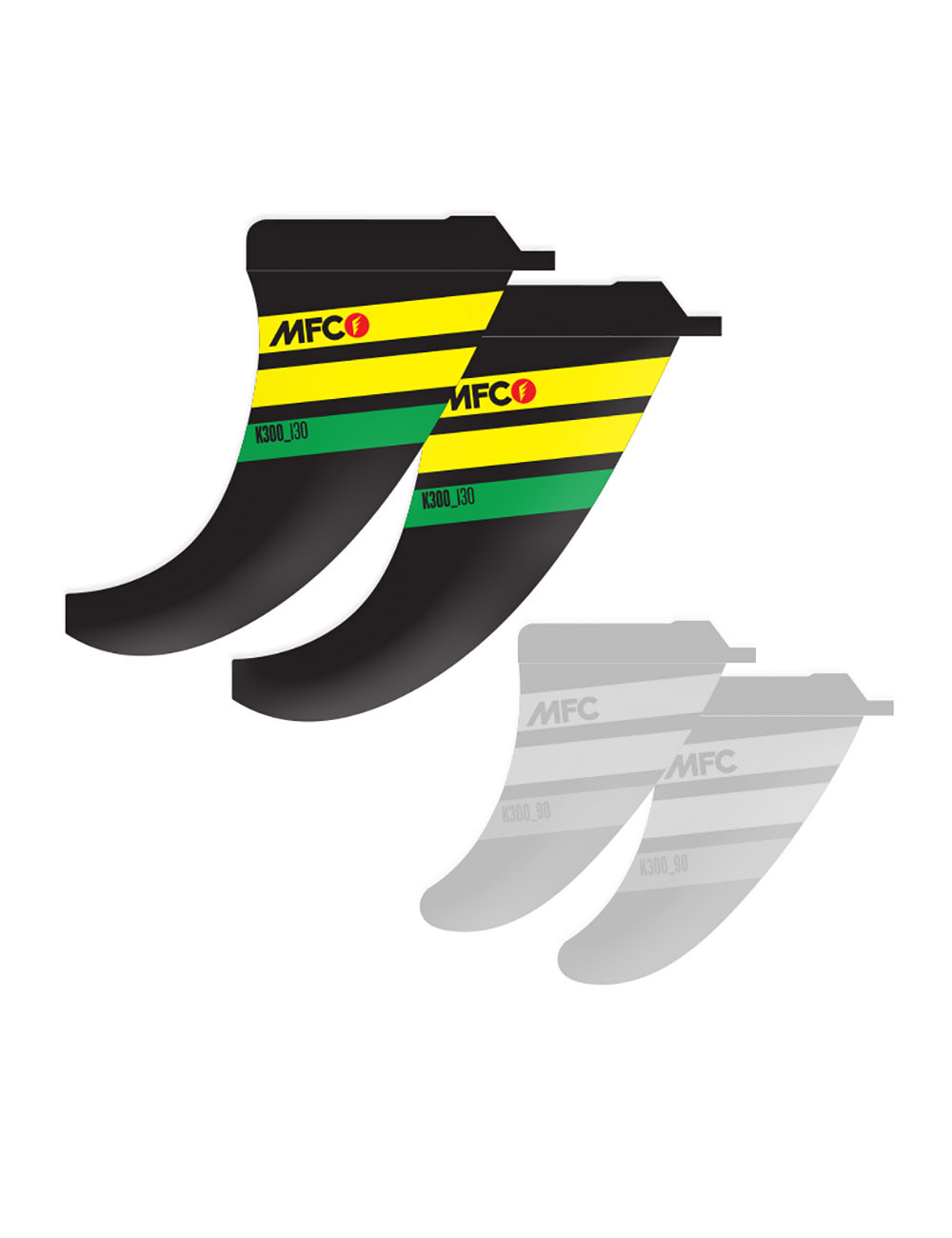 The K300 is the ultimate Wave Quad fin set. It was developed with Kauli Seadi in the last 3 winter seasons, and has been approved by the MFC team riders. The straight leading edge entry gives you quick planing and has a very aggressive angle of attack for your upwind laps. The extreme rake back from middle of the fin to the tip allows you to push hard on your turns and be tight and drive off the top. The On-Shore performances are excellent due to the leading edge straight entry.