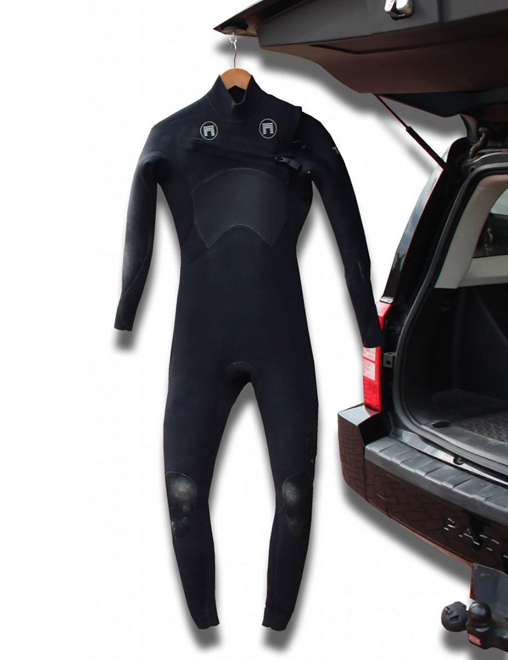 The “Hook Up” hanger is a versatile rubber coated magnet designed to allow hanging of wetsuits, sport apparel and clothing on flat metal surfaces. The “Hook Up” hanger is great for road and camping trips as items can be hung from cars hatchbacks and doors without fear of scratching the paint work or them falling off as the 65mm diameter magnet has a 20kg pull strain which is sturdy enough to easily support a soaking wet 6mm winter wetsuit. Stick it on and hang your kit!